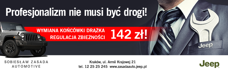 Teraz w autoryzowanym serwisie Jeep'a Sobiesław Zasada Automotive w Krakowie przy ul. Armii Krajowej 21 wymiana końcówki drążka wraz z regulacją zbieżności tylko 142 zł brutto.